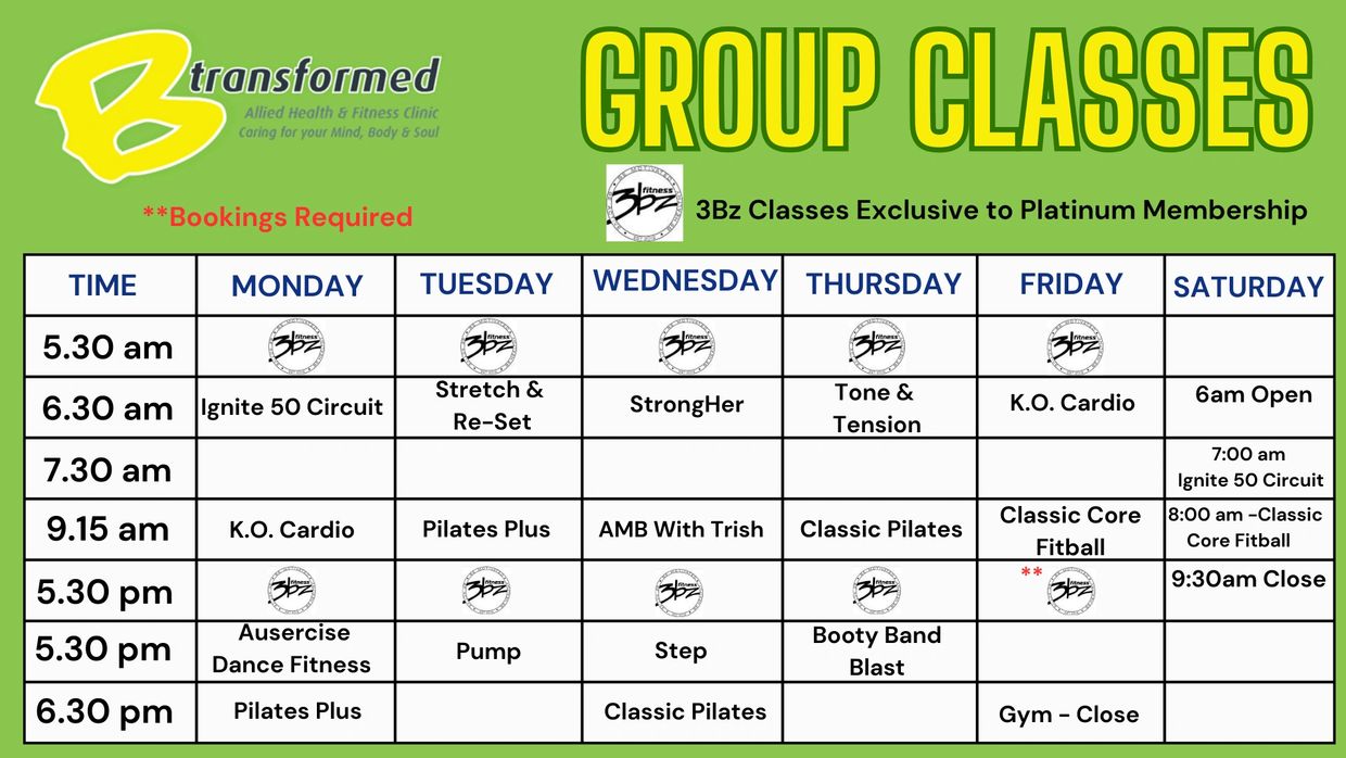 Alternatively, contact our friendly staff on: 0473 624 417 or email: teamleadergym@btransformed.com.au for more information on our classes